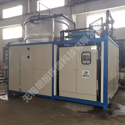 V-HP-SS系列蒸发器采用压缩机作用于冷媒,冷媒与作为传热介质的纯净水产生热交换,再通过纯净水与物料发生热交换,安全性较高,该系统适用于物料纯度要求高,安全性要求较高,常用于食品及制药等行业,主要特点是占地紧凑,但蒸发效率相对较低,安全性较高,无泄露风险,设备结构及控制相对复杂。